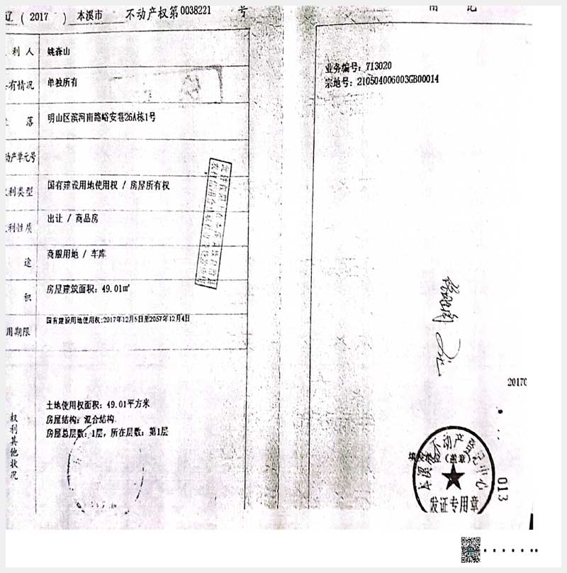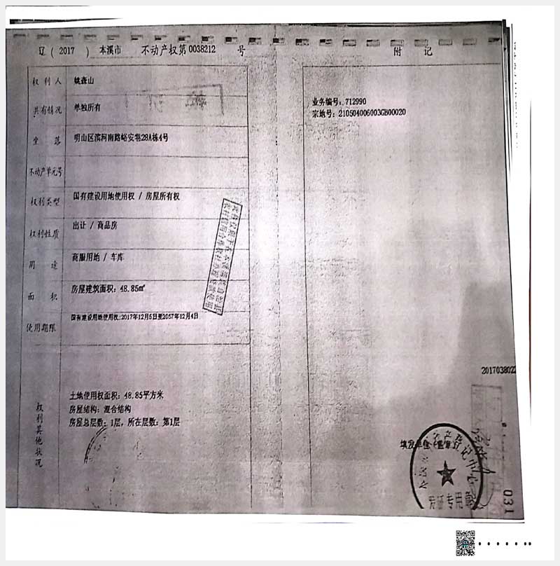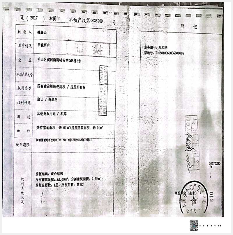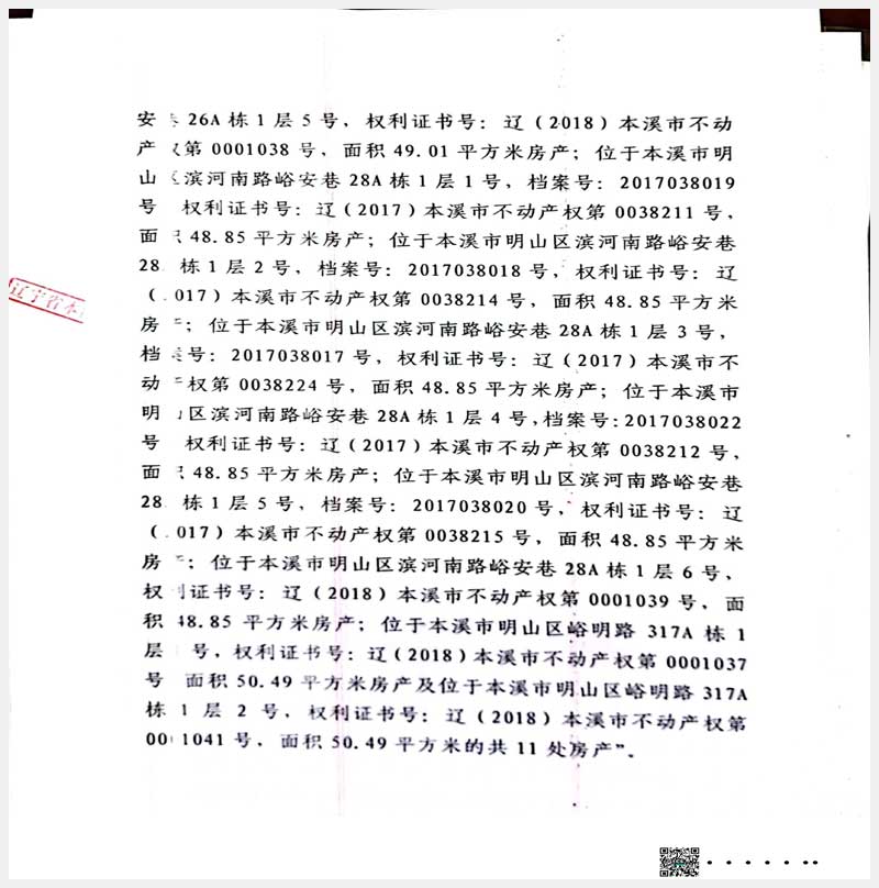 名稱:本溪市明山區濱河南路峪安巷26A棟1、4、5號,28棟1-6號,317A棟1、2號房產 面積:541.11㎡ 瀏覽次數:596