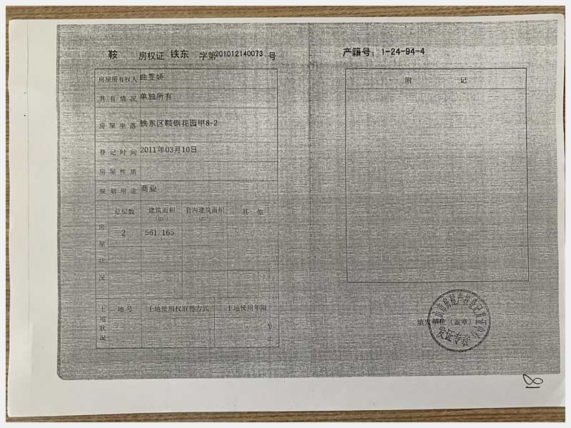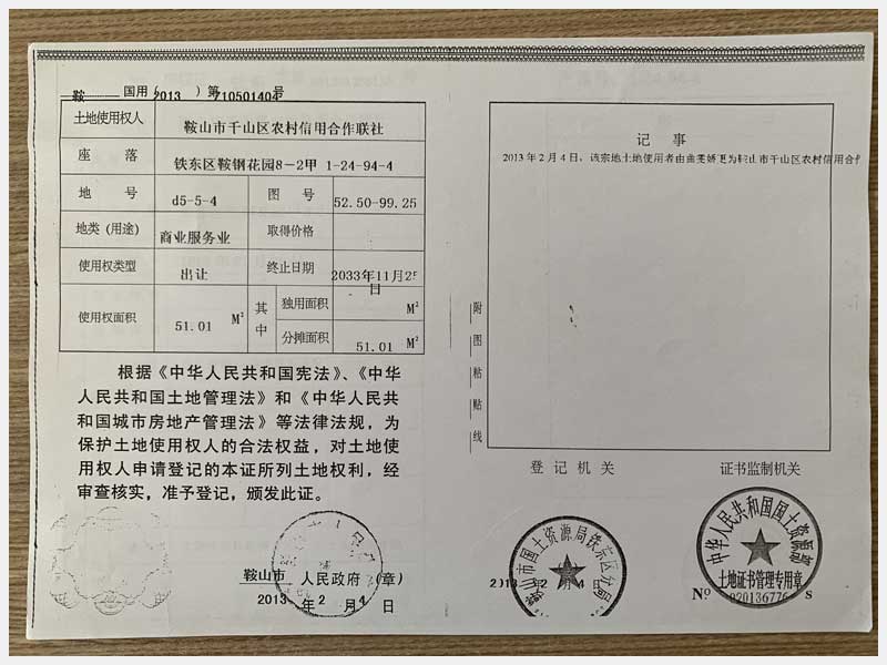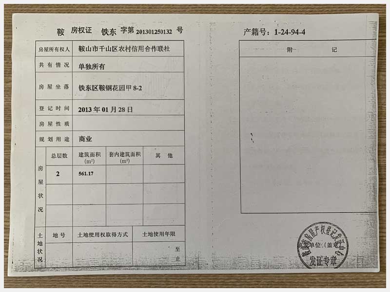 地址:鞍山市鐵東區鞍鋼花園 標的號:68