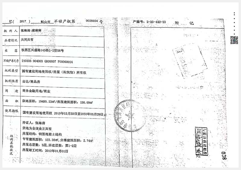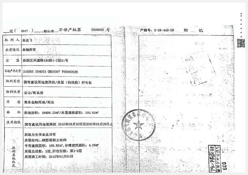 名稱:鞍山市鐵西區興盛路143棟、145棟6處房產 面積:1490.21㎡ 瀏覽次數:1160