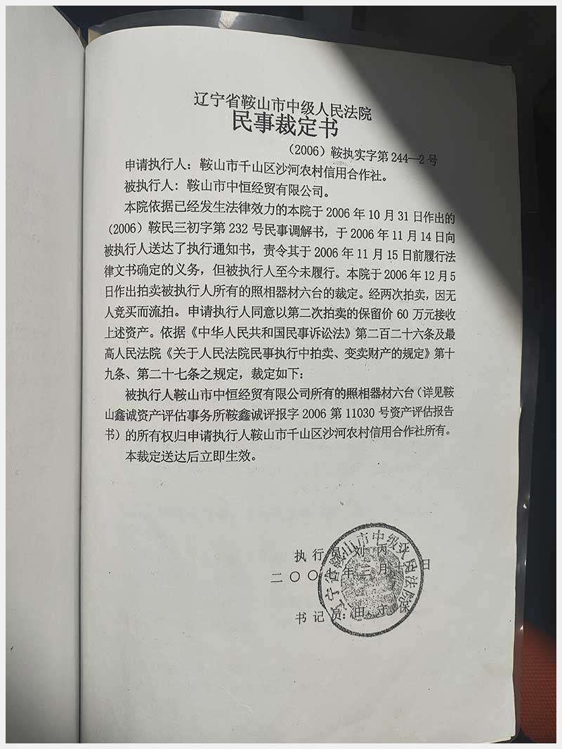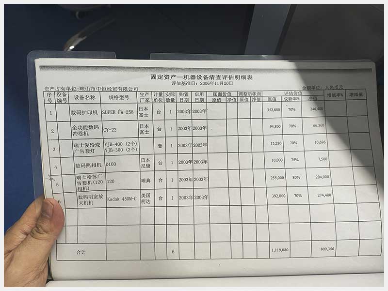 102號 鞍山市中恒經貿有限公司機器設備