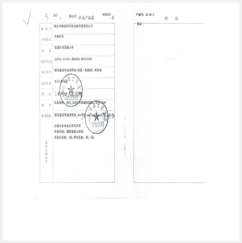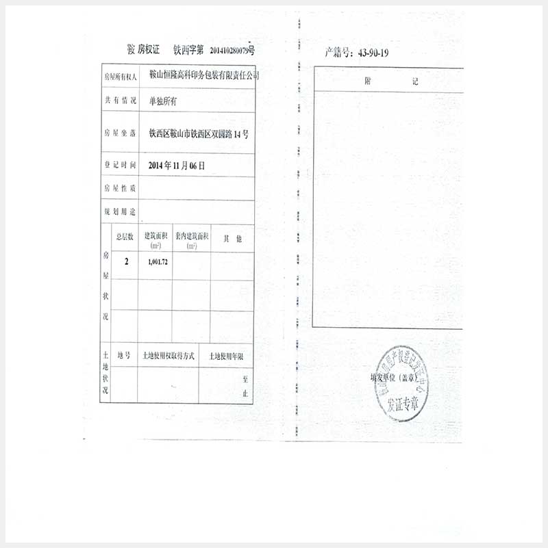 名稱:鞍山市鐵西區雙圓路14號房產及土地使用權 面積:房產:4476.74㎡;土地:5652.3㎡ 瀏覽次數:71