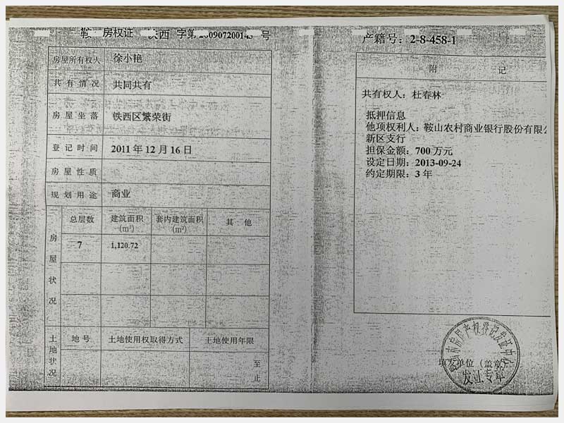 名稱:鞍山市鐵西區繁榮街房產 面積:1120.72㎡ 瀏覽次數:1563